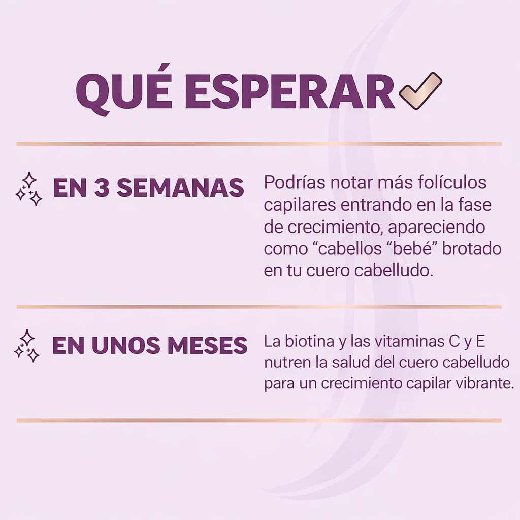 Nutren el folículo, estimulan el crecimiento y ayudan a que el pelo vuelva a crecer más rápido, más grueso y con más vida.